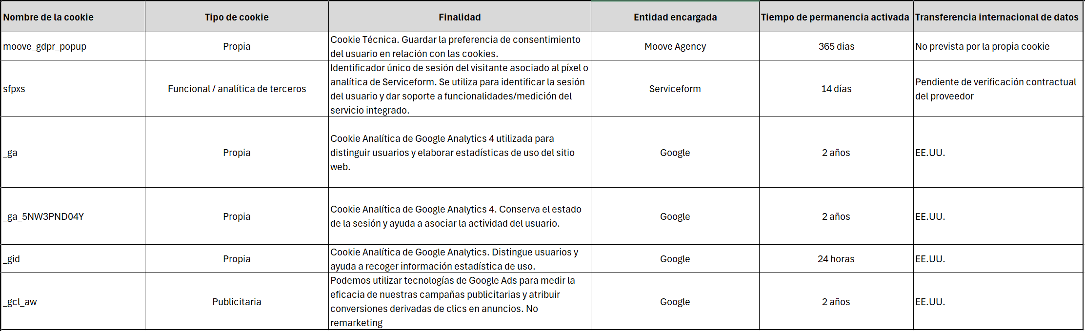 Cookies Propias: son aquellas que se envían al equipo terminal del usuario desde un equipo o dominio gestionado por el propio editor y desde el que se presta el servicio solicitado por el usuario.